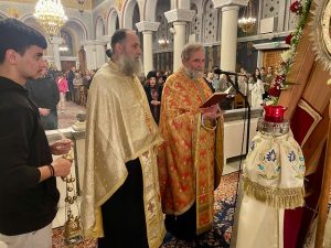 Την ίδια ημέρα, ο Θεοφιλέστατος Επίσκοπος Κεγχρεών κ. Αγάπιος χοροστάτησε και ομίλησε στον Ενοριακό Ι. Ναό Αγίου Νικολάου Κορίνθου, οπου μετέφερε τις ευχές και ευλογίες του σεπτού Ποιμενάρχου της Κορίνθου κ. Παύλου.