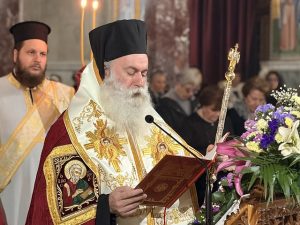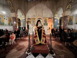 Στο κήρυγμά Του, ο Σεβασμιώτατος αναφέρθηκε στα ιστορικά γεγονότα που συνέβησαν μετά τηθαυματουργή νίκη και τη διάσωση της Κωνσταντινούπολης από τους Αβάρους, όπου ο λαός της Πόλης συγκεντρώθηκε στοναό της Παναγίας των Βλαχερνών, για να υμνήσουν τη Θεοτόκο.