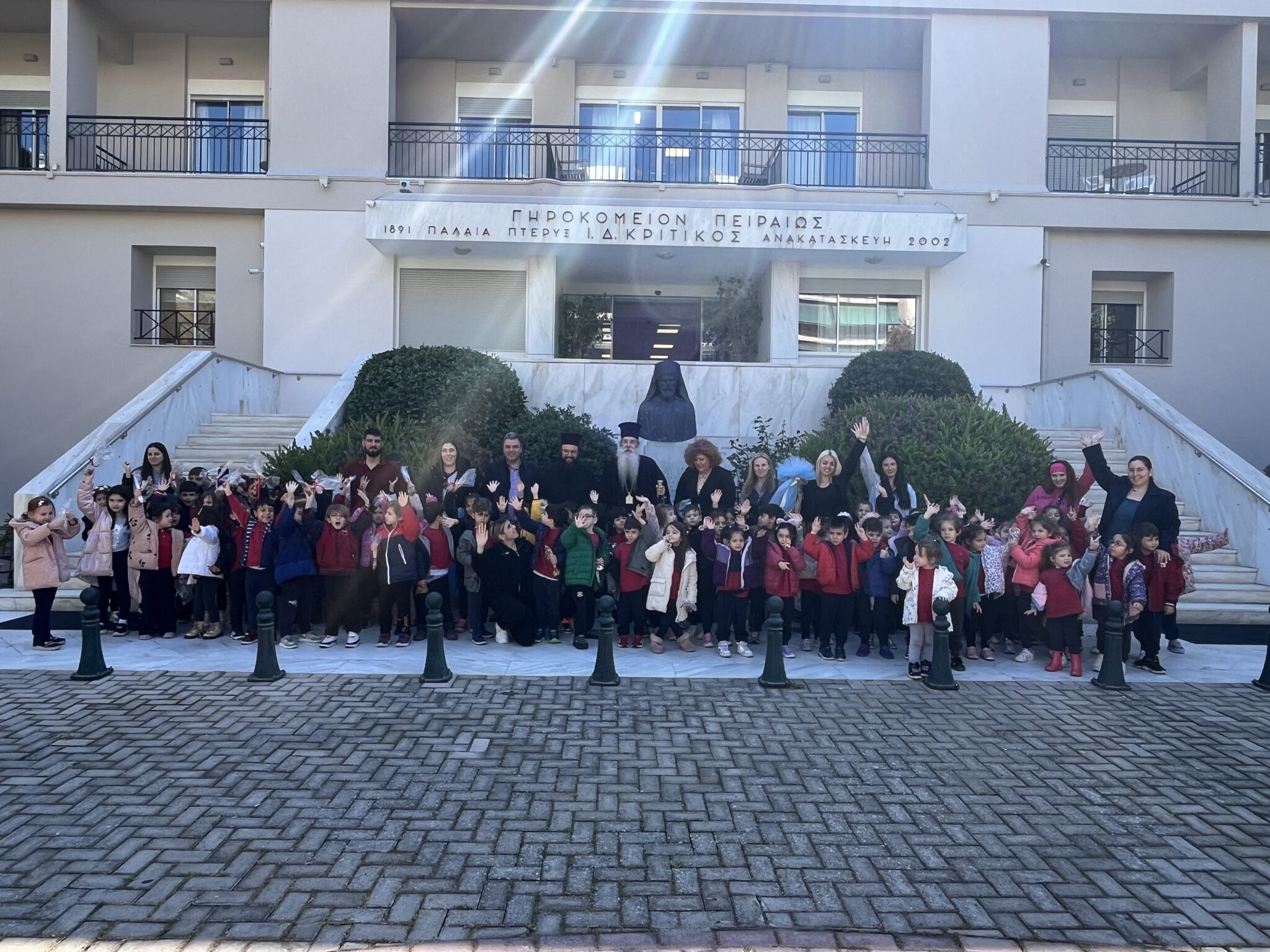 Με ιδιαίτερη χαρά και συγκίνηση πραγματοποιήθηκε σήμερα Τρίτη 31 Μαρτίου 2026 μια όμορφη πασχαλινή δράση αγάπης και προσφοράς, όταν τα παιδιά του Παιδικού Σταθμού και του Νηπιαγωγείου της Ιεράς Μητροπόλεως Πειραιώς επισκέφθηκαν τους ηλικιωμένους που βρίσκονται στο Γηροκομείο Πειραιώς, μεταφέροντας το χαρμόσυνο μήνυμα της εορτής του Λαζάρου.