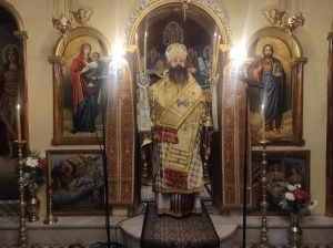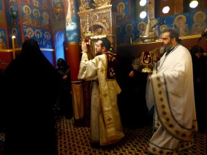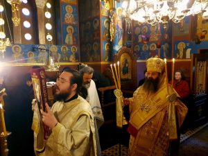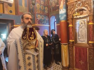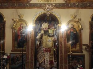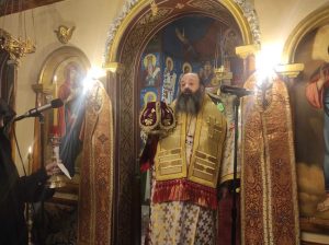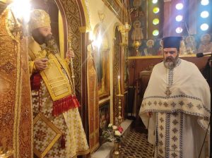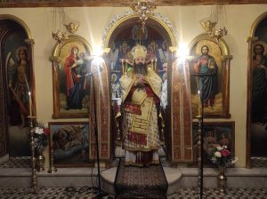 Η ευαρίθμητος αλλά δραστήρια και δημιουργική αδελφότητα, που από το έτος 2000 εγκαταβιώνει στο ως άνω Ι. Μετόχιο, ένεκα της πυρκαϊάς που κατέστρεψε τότε την Ι. Μονή του Προφήτη Ηλία και δεν έχει ακόμη αποκατασταθεί, αλλά και που προσφάτως και πάλι εκινδύνευσαν και Μετόχι και Ι. Μονή, με την ήρεμη μινυρίζουσα ᾄσι των ύμνων της Κυριακής προσέφερε μια κατανυκτική ευκαιρία προσευχής στους εκκλησιαζομένους προσκυνητές, την οποία πνευματική ανάταση συμπλήρωσαν οι λόγοι του Θεοφιλεστάτου κατά το κήρυγμά του, αναφερόμενος, με την ευκαιρία της Ευαγγελικής περικοπής της παραβολής του άφρονος πλουσίου, στην πλεονεξία.