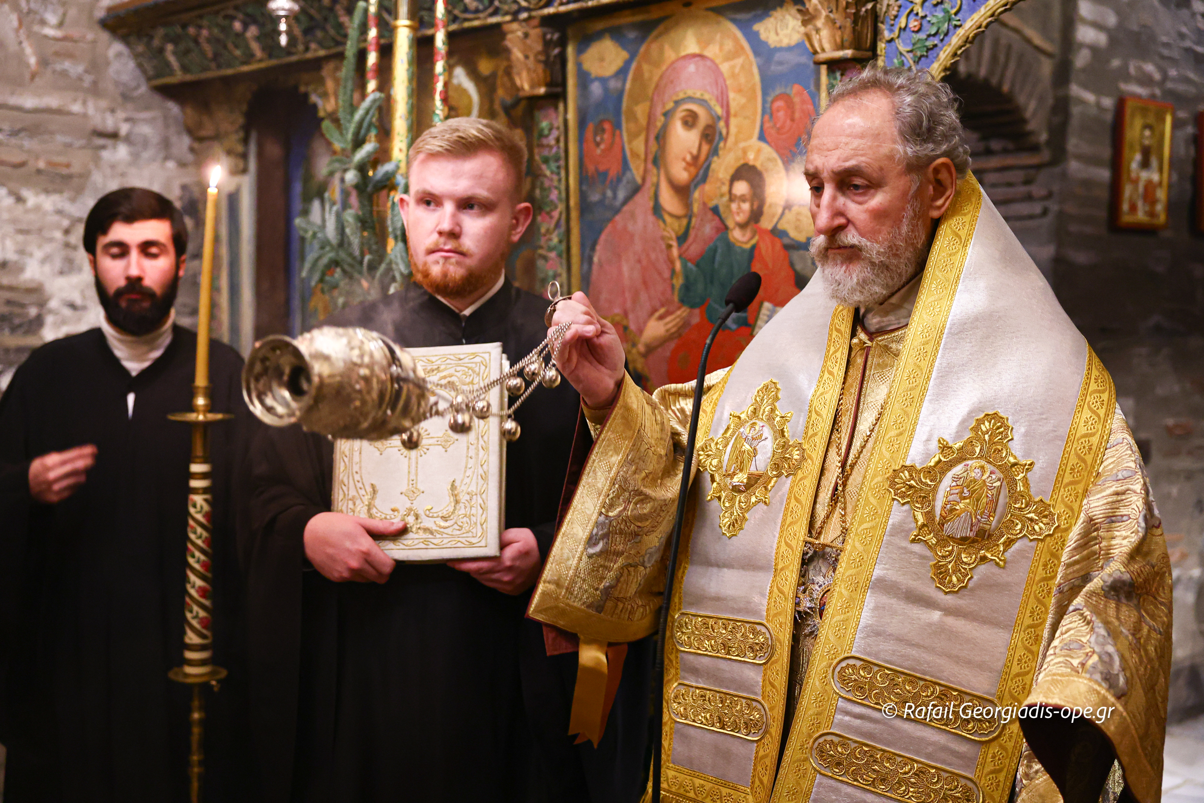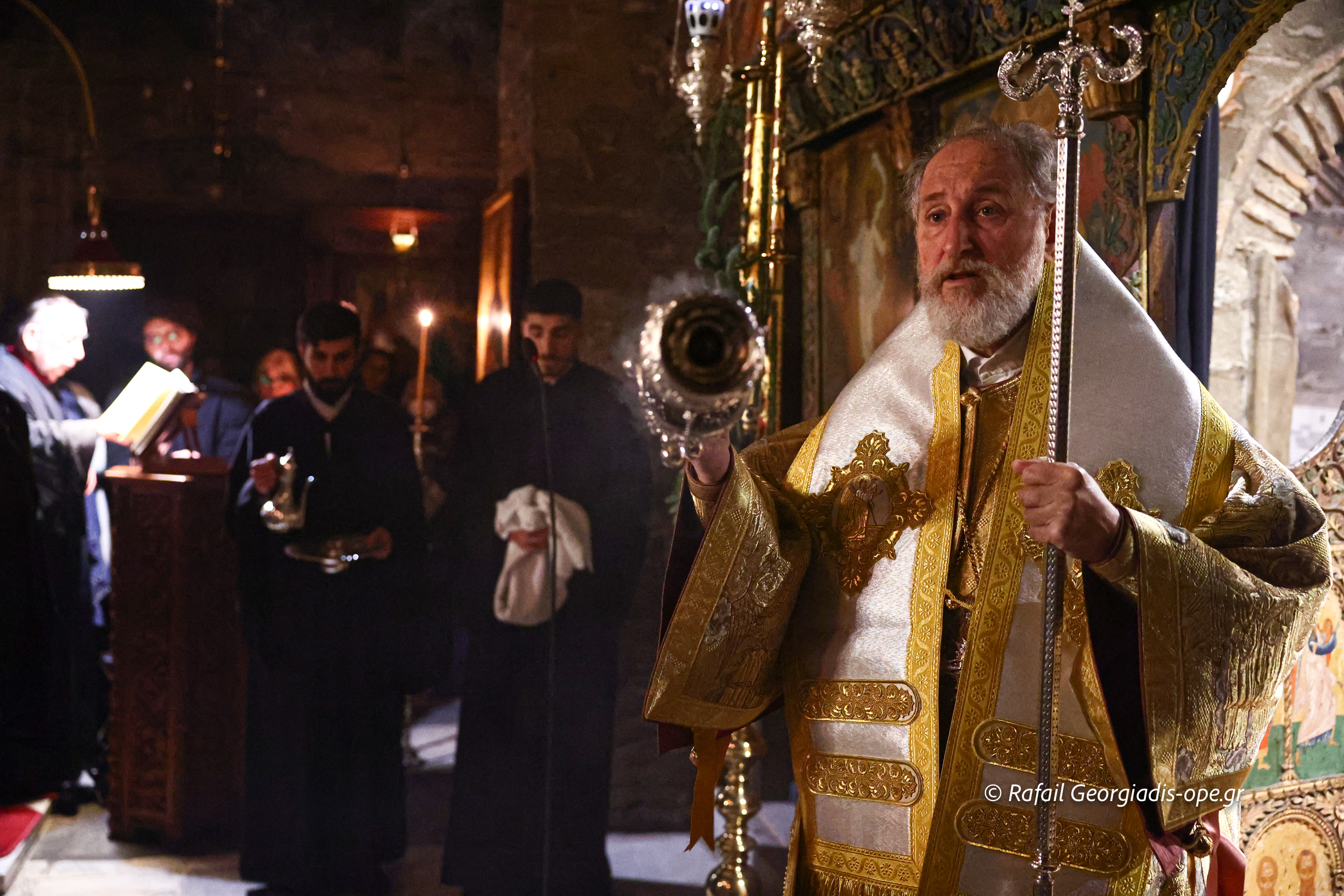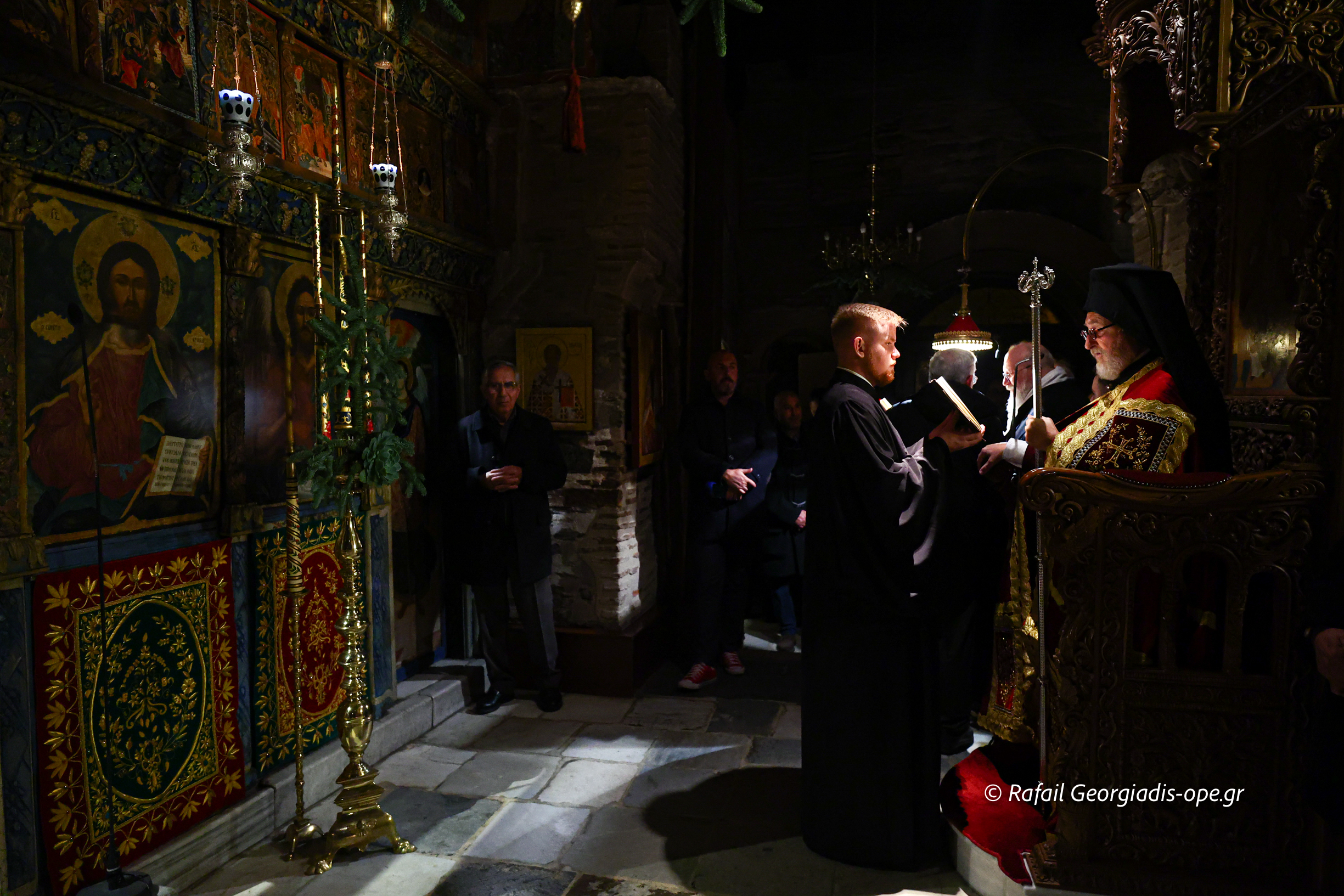 Της Ιεράς Αγρυπνίας και της πανηγυρικής Θείας Λειτουργίας προεξήρχε ο Ηγούμενος της Ι.Μ. Θεοφιλέστατος Επίσκοπος Αμορίου κ. Νικηφόρος, πλαισιούμενος από πατέρες της Μονής, ο οποίος κατά την διάρκεια της Λειτουργίας ανέγνωσε την Πατριαρχική Εγκύκλιο των Χριστουγέννων.