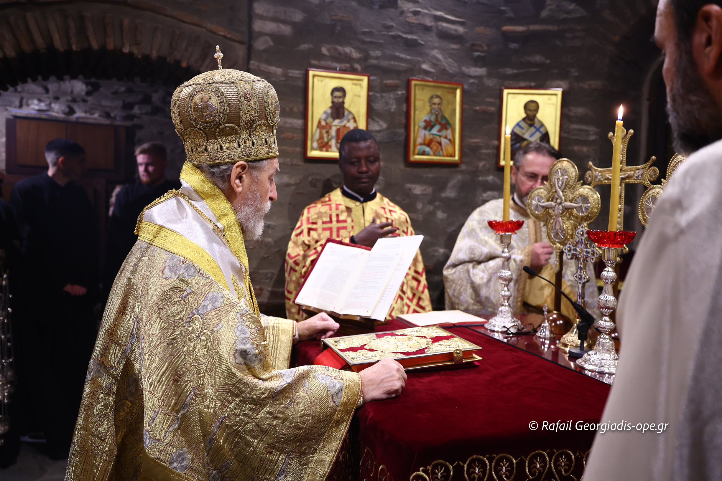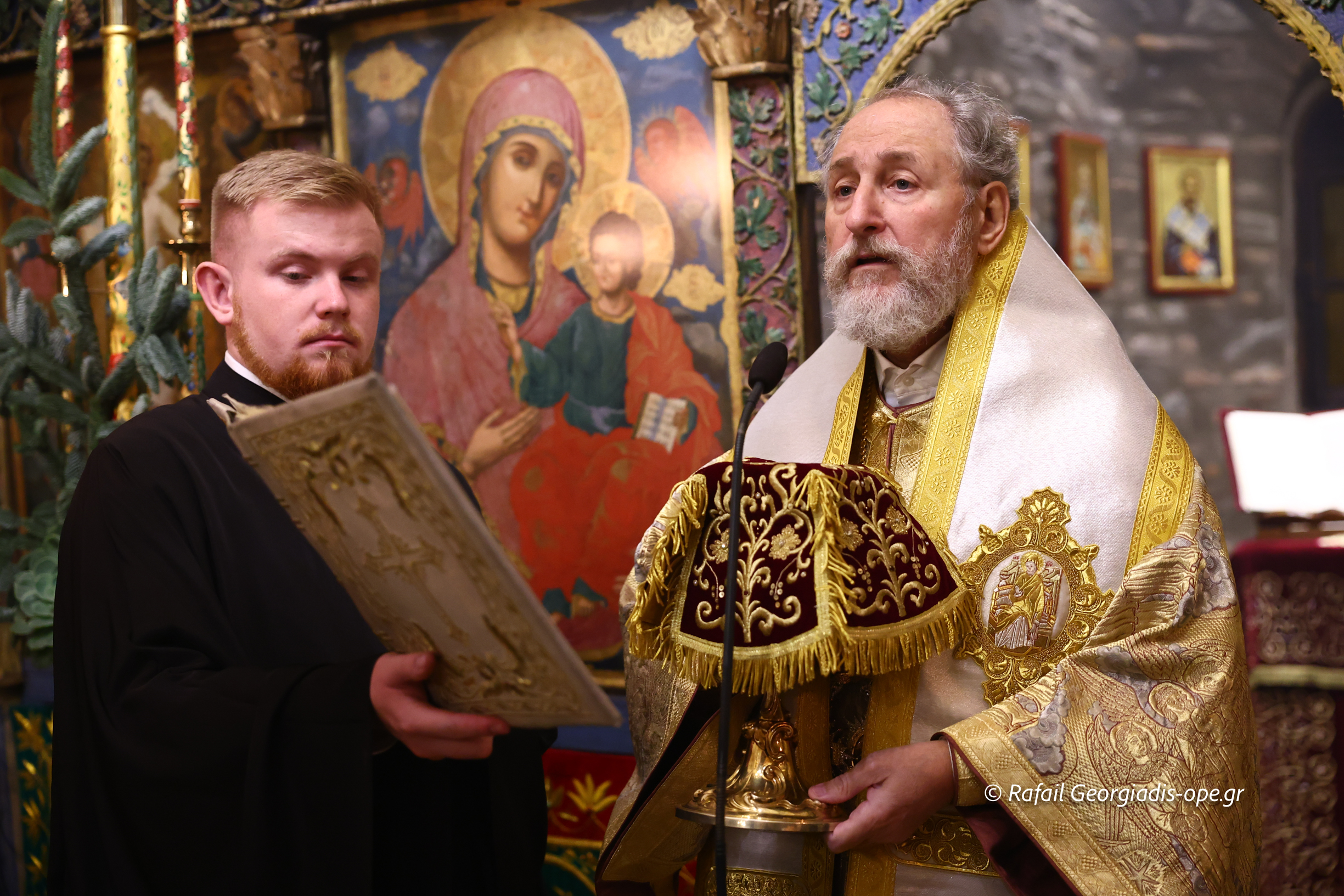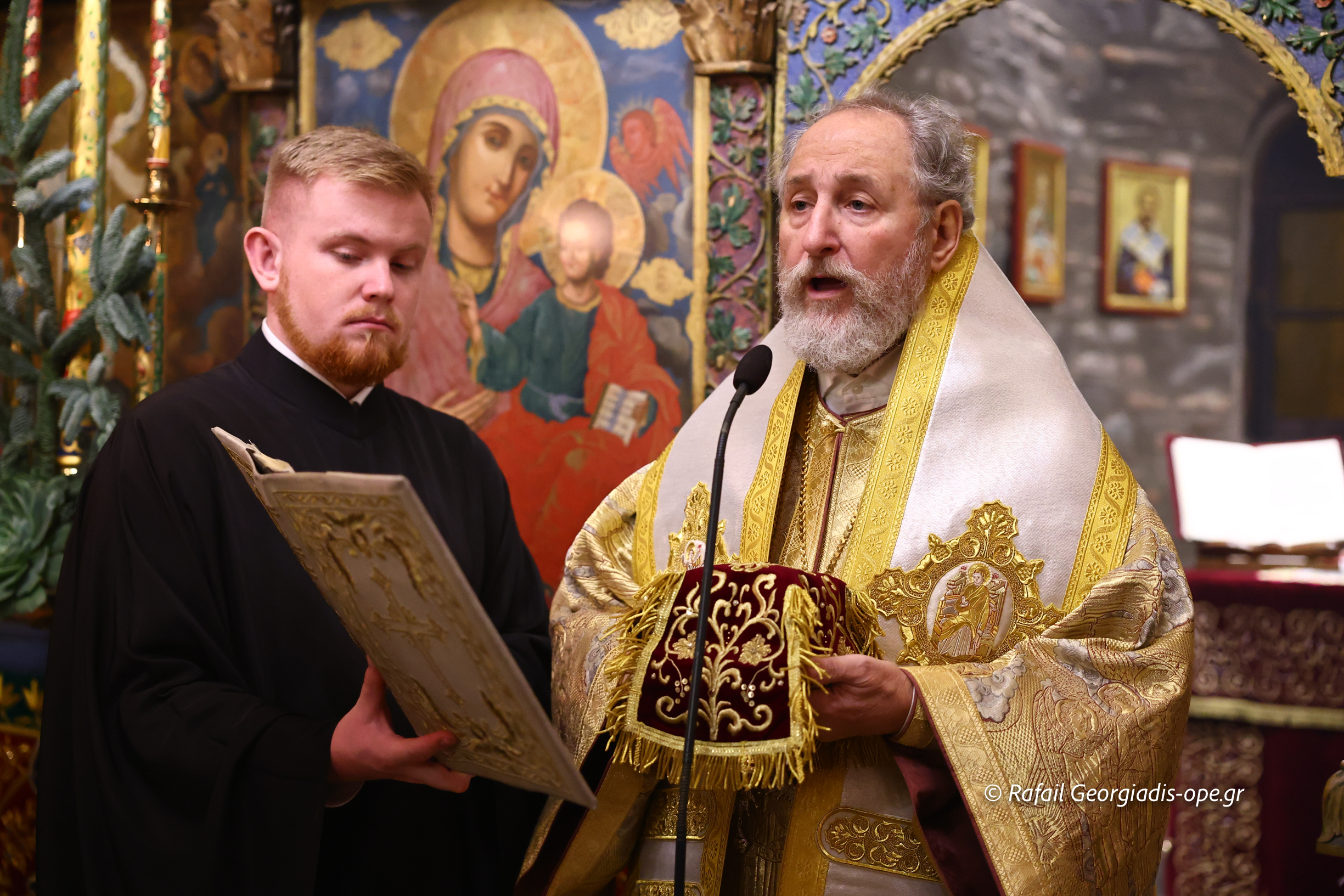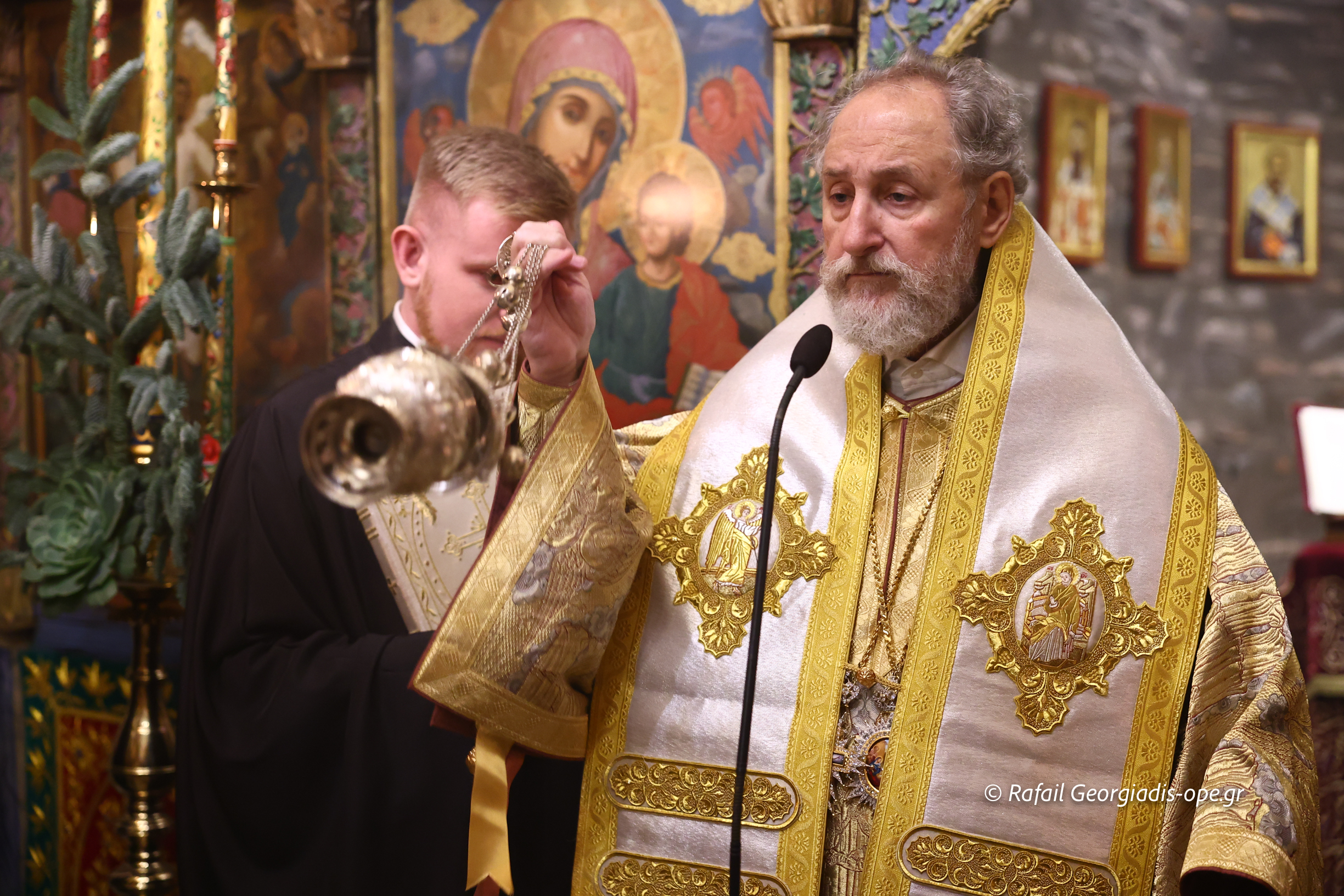 Της Ιεράς Αγρυπνίας και της πανηγυρικής Θείας Λειτουργίας προεξήρχε ο Ηγούμενος της Ι.Μ. Θεοφιλέστατος Επίσκοπος Αμορίου κ. Νικηφόρος, πλαισιούμενος από πατέρες της Μονής, ο οποίος κατά την διάρκεια της Λειτουργίας ανέγνωσε την Πατριαρχική Εγκύκλιο των Χριστουγέννων.