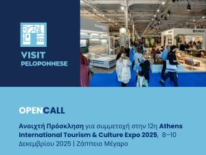 Η Περιφέρεια Πελοποννήσου πρόκειται να συμμετάσχει στην 12η Athens International Tourism & Culture Expo 2025, η οποία θα πραγματοποιηθεί στο Ζάππειο Μέγαρο από τις 8 έως τις 10 Δεκεμβρίου 2025, και απευθύνει ανοιχτή πρόσκληση προς τουριστικούς φορείς και επαγγελματίες της Πελοποννήσου που επιθυμούν να λάβουν μέρος ως Συνεκθέτες.