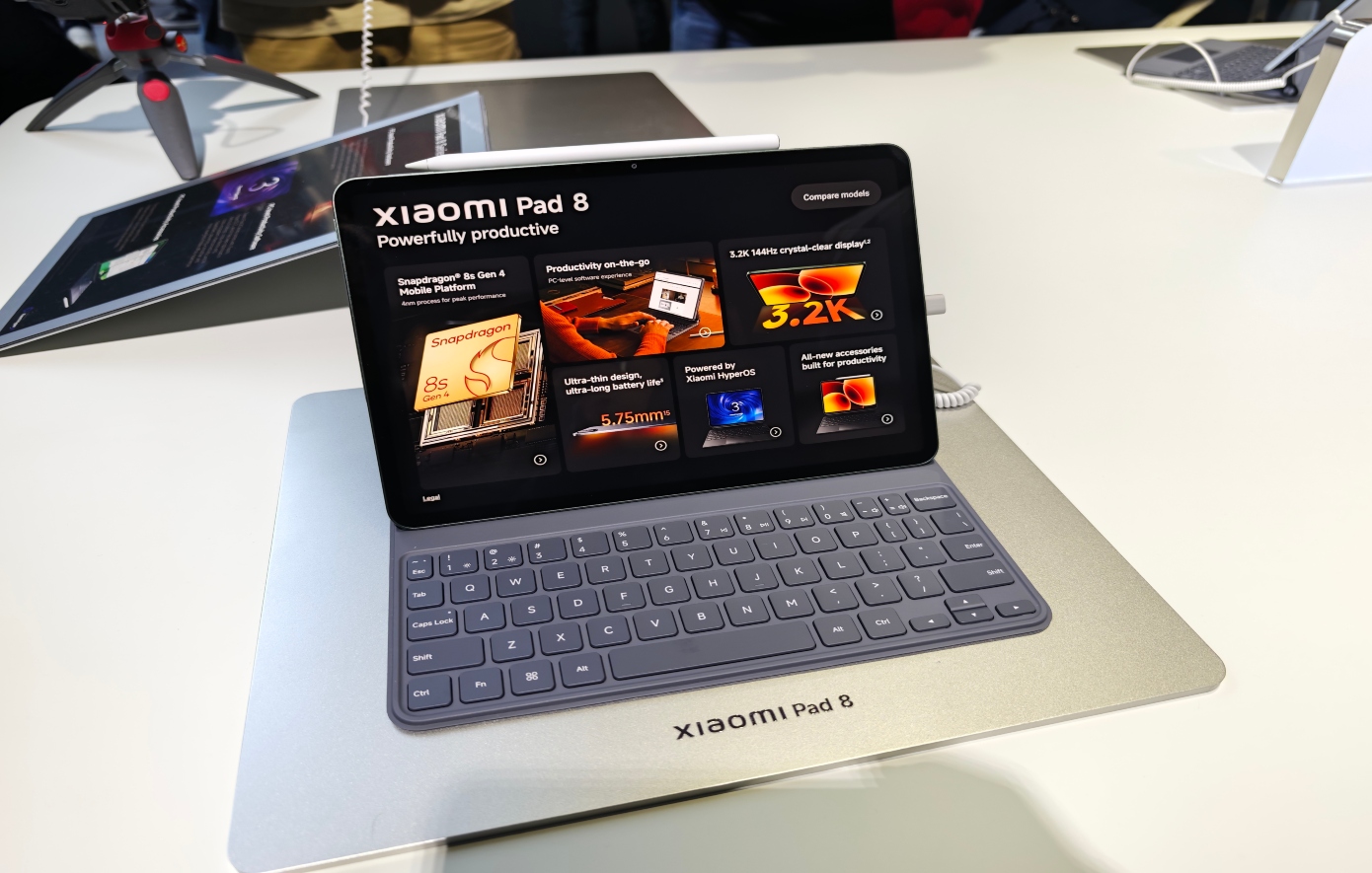 Στο ίδιο «οικοσύστημα» ανακοινώσεων της Βαρκελώνης, δίπλα στα smartphones και στα νέα AIoT προϊόντα, η Xiaomi ανακοίνωσε τα Xiaomi Pad 8 και Xiaomi Pad 8 Pro ως τα πιο ισχυρά και λεπτά tablets που έχει λανσάρει διεθνώς, με οθόνη 11,2 ιντσών 3,2K, φωτεινότητα έως 800 nits και ρυθμό ανανέωσης έως 144Hz, σε σώμα 5,75 mm και βάρος 485 g, μαζί με μπαταρία 9.200 mAh.