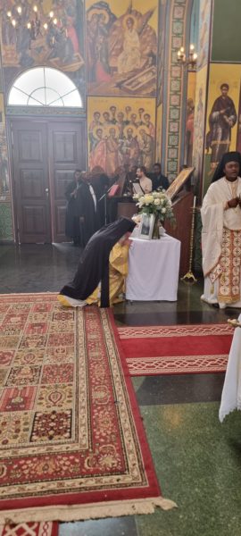 Ο Σεβασμιώτατος Μητροπολίτης Κινσάσας κ. Θεοδόσιος στο κήρυγμα του αναφέρθηκε στην δύναμη της προσευχής, όταν αυτή συνδέεται με την ταπείνωση, την συγχώρεση και την αγάπη. Αναφέρθηκε στο μαρτύριο του Αγίου Μάρτυρος Νικηφόρου, ο οποίος διακρίθηκε για την ταπείνωση, την αγάπη και την συγχώρεση.