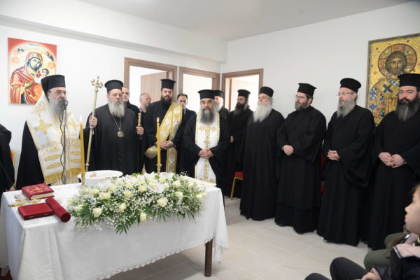 Ο Σεβασμιώτατος ετέλεσε τον Αγιασμό των Εγκαινίων του νεοδμήτου ωραιοτάτου κτηρίου και αναφέρθηκε στις προσπάθειες από τα σχέδια, την θεμελίωση και τις εργασίες έως και την αποπεράτωσή του και ευχαρίστησε όλους όσοι συνείργησαν από την αρχή μέχρι το τέλος, προκειμένου να επιτευχθή αυτός ο ιερός και ωραίος σκοπός. Ανεφέρθη στον αείμνηστο π. Βασίλειο Δημητρόπουλο, για τον οποίο ετέλεσε επιμνημόσυνη δέηση, εν συνεχεία στον νυν προϊστάμενο του Ιερού Ναού π. Μιχαήλ Καραγιάννη, ακάματο εργάτη της Εκκλησίας, τον οποίο τίμησε με το παράσημο του Αποστόλου Ανδρέου της Ιεράς Μητροπόλεως Πατρών.