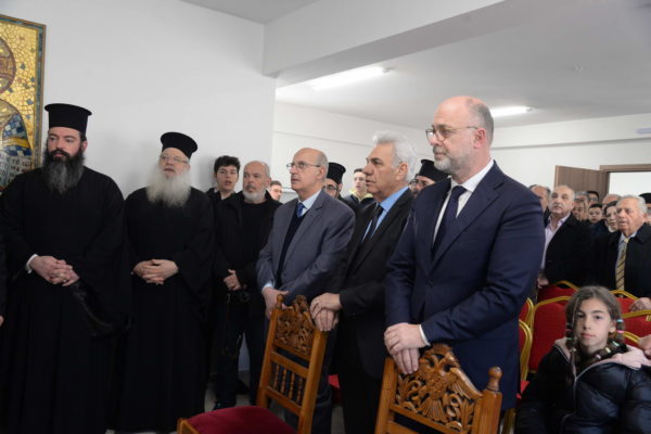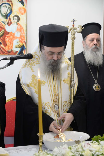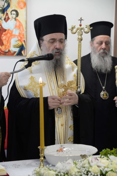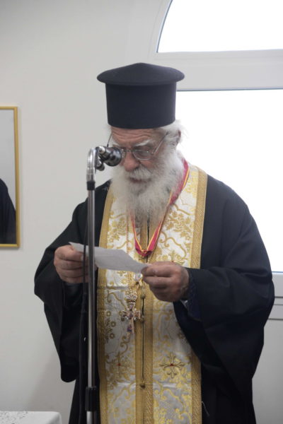 Ο Σεβασμιώτατος ετέλεσε τον Αγιασμό των Εγκαινίων του νεοδμήτου ωραιοτάτου κτηρίου και αναφέρθηκε στις προσπάθειες από τα σχέδια, την θεμελίωση και τις εργασίες έως και την αποπεράτωσή του και ευχαρίστησε όλους όσοι συνείργησαν από την αρχή μέχρι το τέλος, προκειμένου να επιτευχθή αυτός ο ιερός και ωραίος σκοπός. Ανεφέρθη στον αείμνηστο π. Βασίλειο Δημητρόπουλο, για τον οποίο ετέλεσε επιμνημόσυνη δέηση, εν συνεχεία στον νυν προϊστάμενο του Ιερού Ναού π. Μιχαήλ Καραγιάννη, ακάματο εργάτη της Εκκλησίας, τον οποίο τίμησε με το παράσημο του Αποστόλου Ανδρέου της Ιεράς Μητροπόλεως Πατρών.