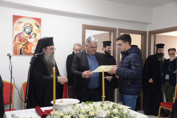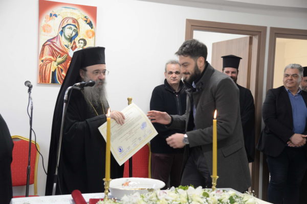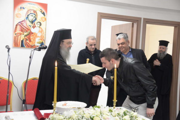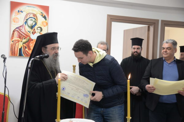 Τέλος, ο Σεβασμιώτατος έδωσε τα πτυχία στους πτυχιούχους μαθητάς της Σχολής Βυζαντινής Μουσικής της Ιεράς Μητροπόλεως Πατρών.
