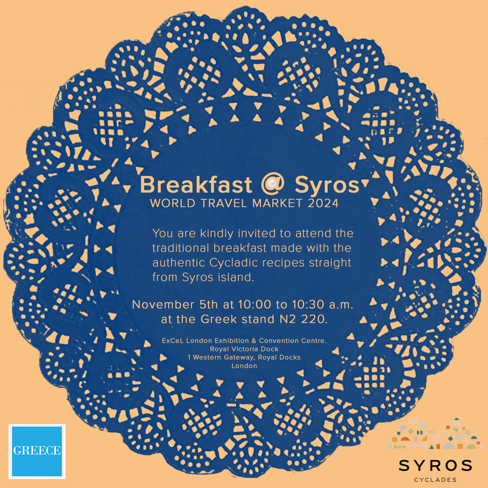 Σύρου. Σε μία ημέρα αφιερωμένη στον τουρισμό και στις παραδοσιακές συνταγές της Σύρου, ο Δήμος Σύρου-Ερμούπολης και πιο συγκεκριμένα η Αντιδήμαρχος Τουρισμού κα Χρηστιάννα Πάπιτση, παρουσίασε με περηφάνια τον θησαυρό των τοπικών μας προϊόντων που μεταμορφώθηκαν σε ένα απολαυστικό πρωινό και προσέφεραν σε δημοσιογράφους, επισκέπτες και επαγγελματίες του τουρισμού στη Βρετανική πρωτεύουσα.