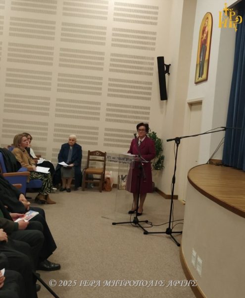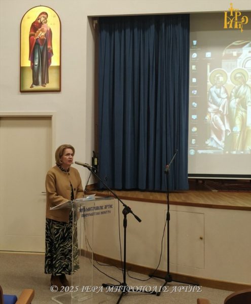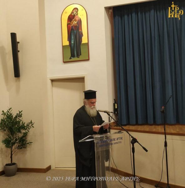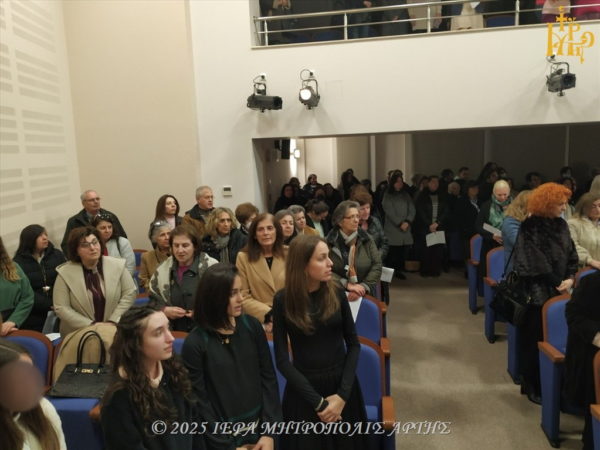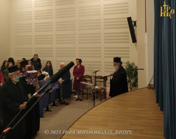 Τέλος, ο Σεβασμιώτατος Μητροπολίτης Άρτης κ. Καλλίνικος αφού ευχαρίστησε και συνεχάρη την ομιλήτρια κυρία Σοφία Μιμηγιάννη – Γιαννούλη, απηύθηνε ευχές και διενεμήθησαν αναμνηστικά, ως ευλογία.