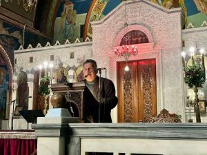 Θέτοντας τα παραπάνω καίρια ερωτήματα ο προσκεκλημένος από τον Σεβασμιώτατο Ποιμενάρχη μας κ. Διονύσιο επίσημος ομιλητής, ένας από τους πραγματικούς και ουσιαστικούς θεολόγος, έδωσε στους παρευρισκόμενους σ᾿ αυτή την Χριστουγεννιάτικη Εκδήλωση τα κίνητρα να ανταποκριθούμε όλοι μας και να βιώσουμε, με την ευκαιρία της Χριστού Γεννήσεως, το μήνυμα ότι ο Θεός μας δημιούργησε για να κοινωνήσουμε μαζί Του και να γίνουμε μέτοχοι της αιώνιας ζωής Του, να θεραπεύσουμε τη φύση μας και να νικήσουμε το θάνατο και όχι για να βελτιώσουμε απλά τον χαρακτήρα μας ή να εφησυχάσουμε ψυχολογικά.