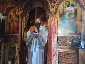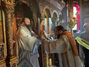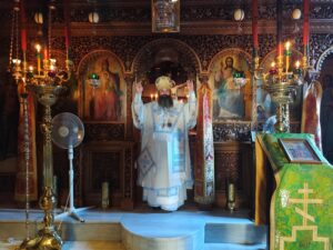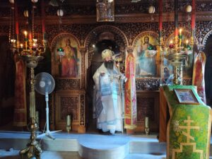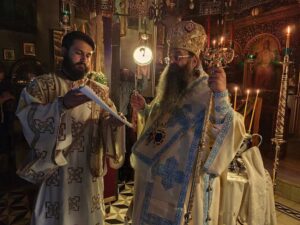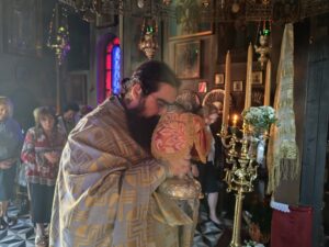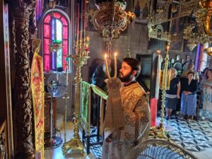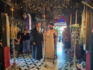 Το εσπέρας της εορτής τελέσθηκε ο Μέγας Εσπερινός μετ̉ αρτοκλασίας και την επομένη, 1η Οκτωβρίου 2024, κύρια ημέρα της εορτής ο Πανηγυρικός Όρθρος, ο Αγιασμός της νουμηνίας και Αρχιερατική Θ. Λειτουργία από τον Καθηγούμενο της Ι. Μονής Θεοφιλέστατο Επίσκοπο Κεγχρεών κ. Αγάπιο, Πρωτοσύγκελλο της Ι. Μητροπόλεως μας. Μετά του Θεοφιλεστάτου αγίου Ηγουμένου συλλειτούργησαν ο Εφημέριος της εβδομάδος της Ι. Μονής εκ της αδελφότητος Ιερομόναχος π. Λογγίνος και οι Διάκονοι π. Χρήστος Χίλιας και π. Άγγελος Σαλάτας. Πριν το «Δι̉ ευχών» της απολύσεως της Θ. Λειτουργίας ο Θεοφιλέστατος Βοηθός Επίσκοπος και Ηγούμενος της Ι. Μονής ευχήθηκε στους πατέρες της Ι. Μονής και στους ευλαβείς προσκυνητές η Υπεραγία Θεοτόκος να σκεπάζει με την Θεομητορική Της χάρη όλους τους ευσεβείς και Ορθοδόξους Χριστιανούς και «γοργώς» να ενωτισθεί τις προσευχές τους για ταχεία ανάρρωση και επιστροφή του Σεβασμιωτάτου Μητροπολίτου μας κ. Διονυσίου στην Ι. Μητρόπολή μας ως και για την κατάσβεση της καταστρεπτικής πυρκαϊάς που συνεχίζει να κατακαίει την όμορφη Κορινθία μας, αξιώνει δε όλους μας να εορτάζουμε εις χρόνους πολλούς και αγαθούς την σεπτή Της εορτή με υγεία και ειρήνη, μεσιτεύοντας στον Σωτήρα Υιό Της και Θεό μας υπέρ της ψυχικής σωτηρίας μας.