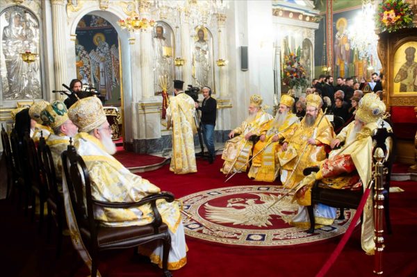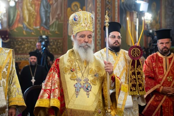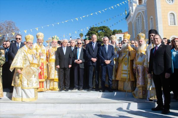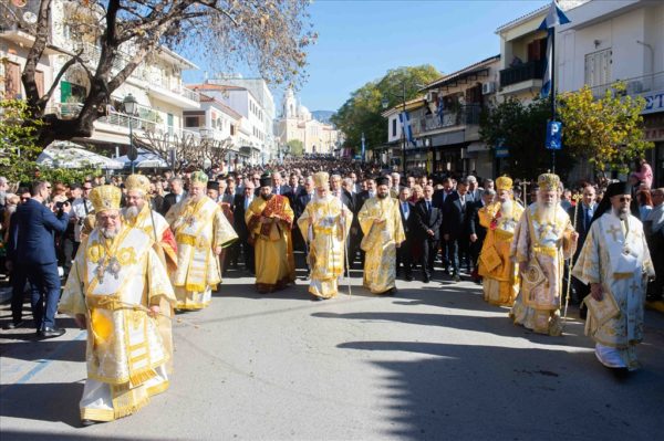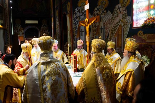 Στον Όρθρο και την πανηγυρική πολυαρχιερατική Θεία Λειτουργία προέστη ο Σεβασμιώτατος Μητροπολίτης Ύδρας κ. Εφραίμ, συλλειτουργούντων των Σεβασμιωτάτων Μητροπολιτών, Κερκύρας κ. Νεκταρίου, Ιλίου κ. Αθηναγόρου, Μεγάρων κ. Κωνσταντίνου, Καρθαγένης κ. Μελετίου, Σταγών κ. Θεοκλήτου, Παραμυθίας κ. Σεραπίωνος, Μαντινείας κ. Επιφανίου, του Θεοφιλεστάτου Επισκόπου Τανάγρας κ. Αποστόλου και Μεσσηνίας κ. Χρυσοστόμου.