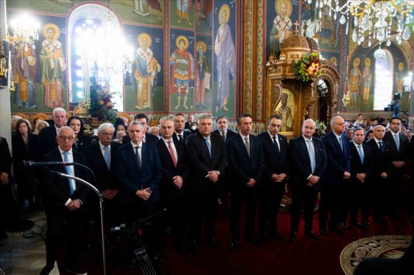 Παρέστησαν, ο τ. Πρόεδρος της Δημοκρατίας Πρ. Παυλόπουλος, ο τ. Πρωθυπουργός Αντ. Σαμαράς, ο Πρόεδρος της Βουλής Ν. Κακλαμάνης, ο εκπρόσωπος της Κυβέρνησης Υφυπουργός Εργασίας και Κοιν. Ασφάλισης Κ. Καραγκούνης, οι Βουλευτές Ι. Λαμπρόπουλος, Μ. Χρυσομάλλης, Π. Μαντάς και Μ. Κατρίνης, ο Περιφερειάρχης Πελοποννήσου Δ. Πτωχός, ο Δήμαρχος Καλαμάτας Αθ. Βασιλόπουλος, Δήμαρχοι άλλων περιοχών, ο Αργηγός ΓΕΕΘΑ Στρατηγός Δ. Χούπης, ο Αρχηγός του Πυροσβεστικού Σώματος Αντιστράτηγος Θ. Βάγιας, ο Γεν. Αστυνομικός Δ/ντής Πελοποννήσου Υποστράτηγος Ηλ. Αξιοτόπουλος, εκπρόσωποι Κομμάτων, του Δικαστικού Σώματος, των λοιπών Σωμάτων Ασφαλείας και άλλων φορέων.
