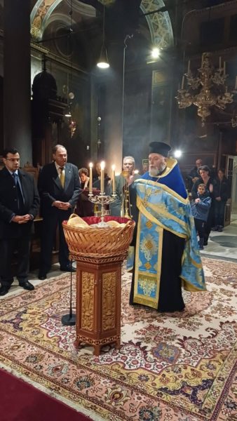 Παρέστησαν οι αρχές της Νήσου και αντιπροσωπεία σπουδαστών και σπουδαστριών από την Α.Ε.Ν μετά του κ. Διοικητού, του Διευθυντού σπουδών και εκπαιδευτικών ως και ικανός αριθμών πιστών.
