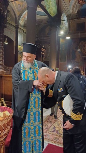 Ο Γενικός Αρχιερατικός Επίτροπος Πρωτοπρεσβύτερος π. Ακίνδυνος Δαρδανός απευθυνόμενος στους σπουδαστές και τις σπουδάστριες τόνισε την σημασία της πίστεως και της παρουσίας του Αγίου Νικολάου στην πορεία της ζωής τους στα πλοία και στις θάλασσες.
