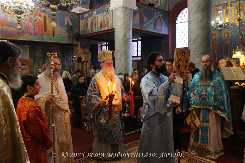 Προεξήρχε ο Σεβασμιώτατος Μητροπολίτης Άρτης κ. Καλλίνικος, ο οποίος στο Κήρυγμά του υπογράμμισε ότι είναι «ο Άγιος Νικόλαος φάρος στις καταιγίδες του βίου».