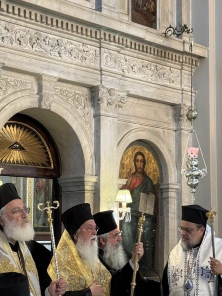 Προεξήρχε ο Σεβασμιώτατος Μητροπολίτης Λαοδικείας κ. Θεοδώρητος εκπρόσωπος του Παναγιωτάτου Οικουμενικού Πατριάρχου κ.κ. Βαρθολομαίου και έλαβαν μέρος οι Σεβασμιώτατοι Μητροπολίτες Μεσσηνίας κ. Χρυσόστομος, εκπρόσωπος του Μακαριωτάτου Αρχιεπισκόπου Αθηνών και πάσης Ελλάδος κ.κ. Ιερώνυμου, Περιστερίου κ. Γρηγόριος, ενώ παρέστη ο Σεβασμιώτατος Αρχιεπίσκοπος Κρήτης κ. Ευγένιος.