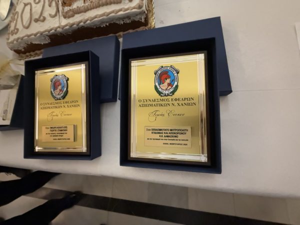 Με μία όμορφη εκδήλωση τα μέλη του Συνδέσμου Εφέδρων Αξιωματικών Χανίων τίμησαν τον Σεβασμιώτατο Μητροπολίτη Κυδωνίας και Αποκορώνου κ. Δαμασκηνό για την προσφορά του στον τόπο, την Δευτέρα 17 Φεβρουαρίου, στη Λέσχη Αξιωματικών Χανίων όπου τελέσθηκε και η ευλογία της Αγιοβασιλόπιττας προεξάρχοντος του Σεβ. Ποιμενάρχη.