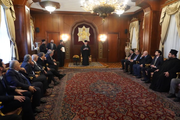 Προηγουμένως, εκ μέρους του Συνδέσμου Μουσικοφίλων Πέραν, τον Παναγιώτατο προσφώνησε ο Πρόεδρος του Δ.Σ. του, Eντιμολ. Άρχων Α’ Δομέστικος της Μ.τ.Χ.Ε. κ. Γεώργιος Κιοσέογλου, ο οποίος, μεταξύ άλλων, αναφέρθηκε εκτενώς στο επιτελούμενο έργο, καθώς και στις δραστηριότητες του Συνδέσμου κατά το προηγούμενο έτος.