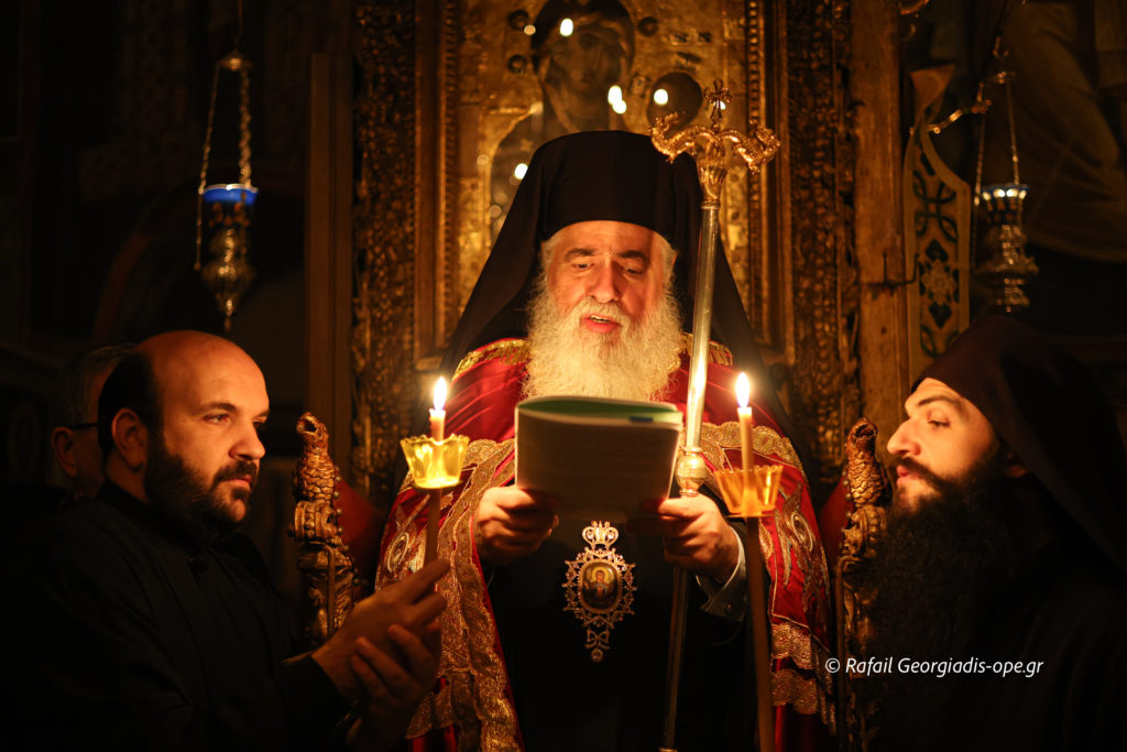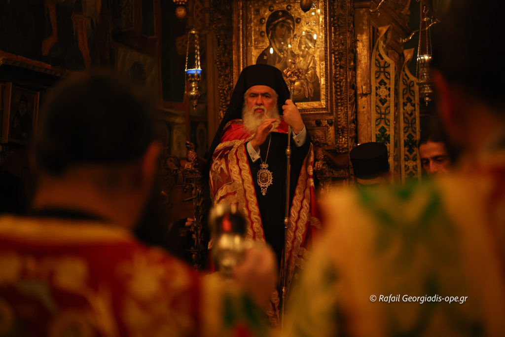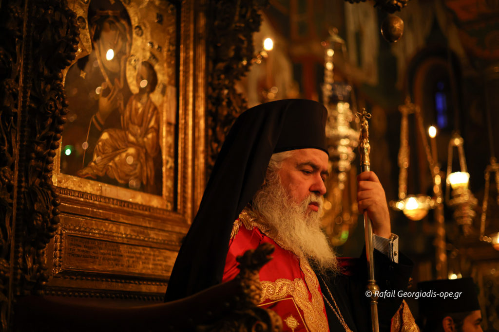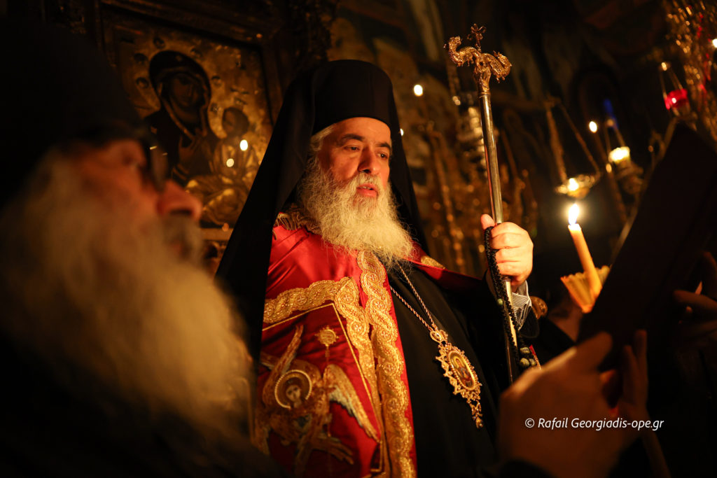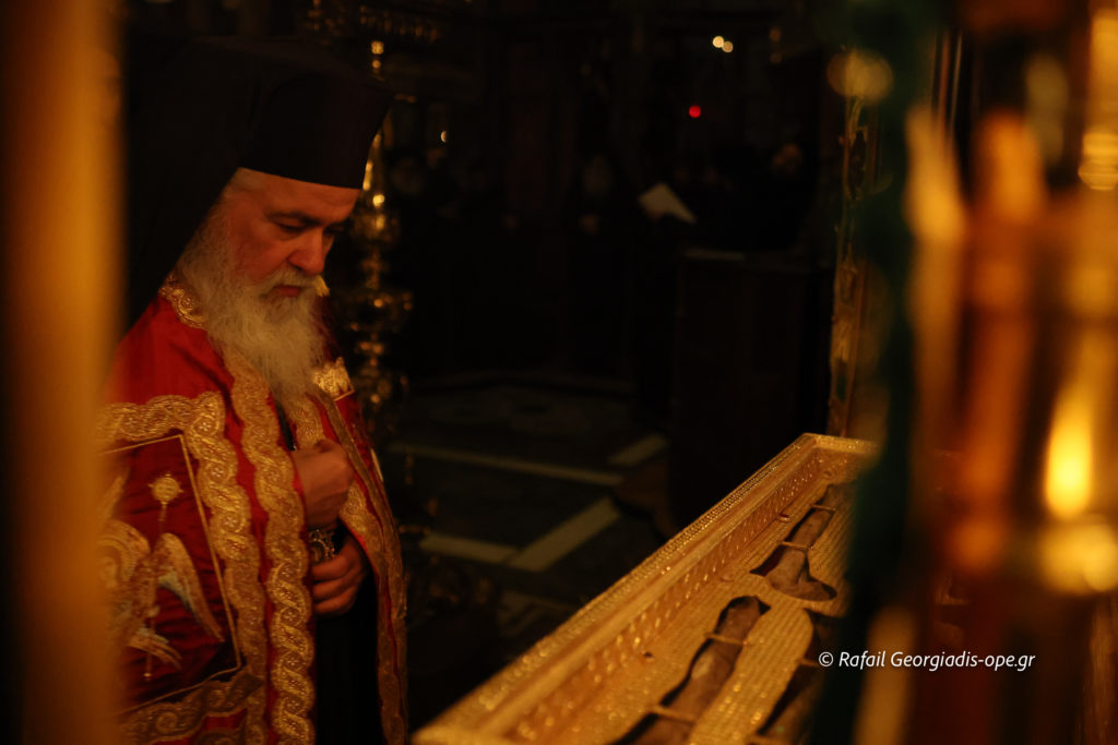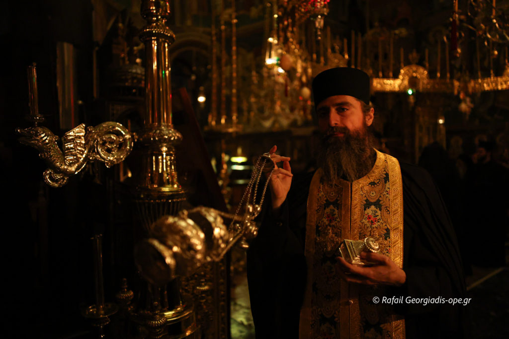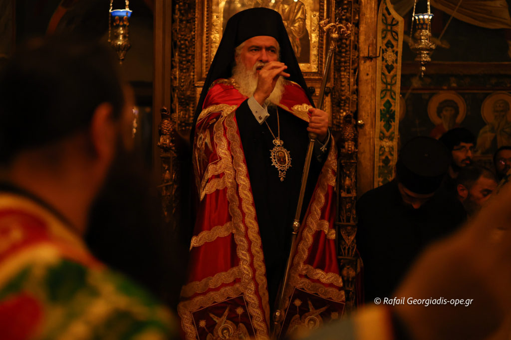 Του Πανηγυρικού Εσπερινού προεξάρχει ο Μητροπολίτης Νεαπόλεως και Σταυρουπόλεως κ. Βαρνάβας, πλαισιούμενος από τον Καθηγούμενο της Ιεράς Μονής Βατοπαιδίου Γέροντα Εφραίμ, ιερείς και διακόνους.
