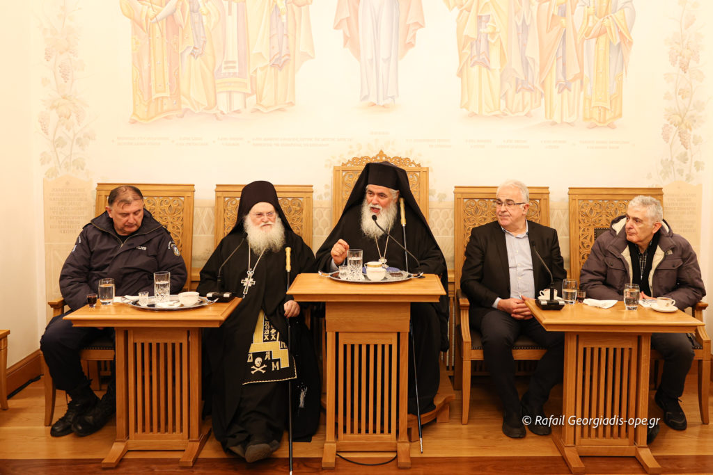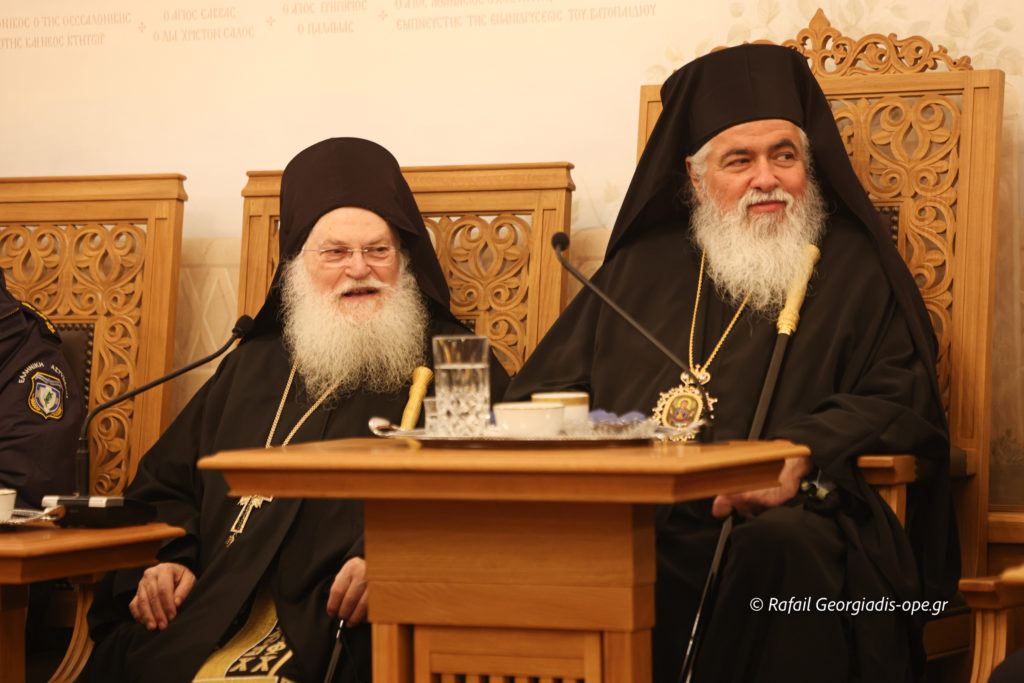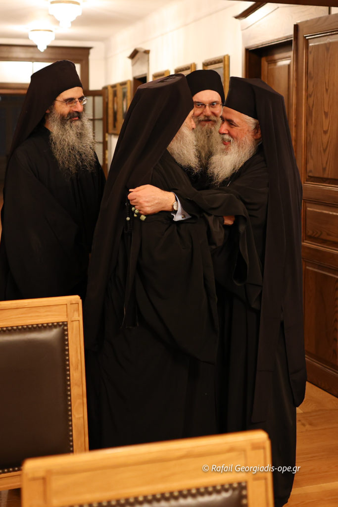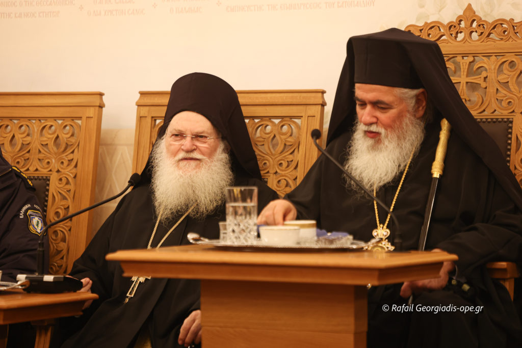 Κατά τη διάρκεια της Λιτής, τηρήθηκε το αγιορείτικο έθιμο με την προσφορά του παραδοσιακού κεράσματος στο Μεγάλο Συνοδικό της Μονής, όπου αντηλλάγησαν εγκάρδιες προσφωνήσεις και ευχές από τον Μητροπολίτη Νεαπόλεως κ.Βαρνάβα και τον Γέροντα Εφραίμ.