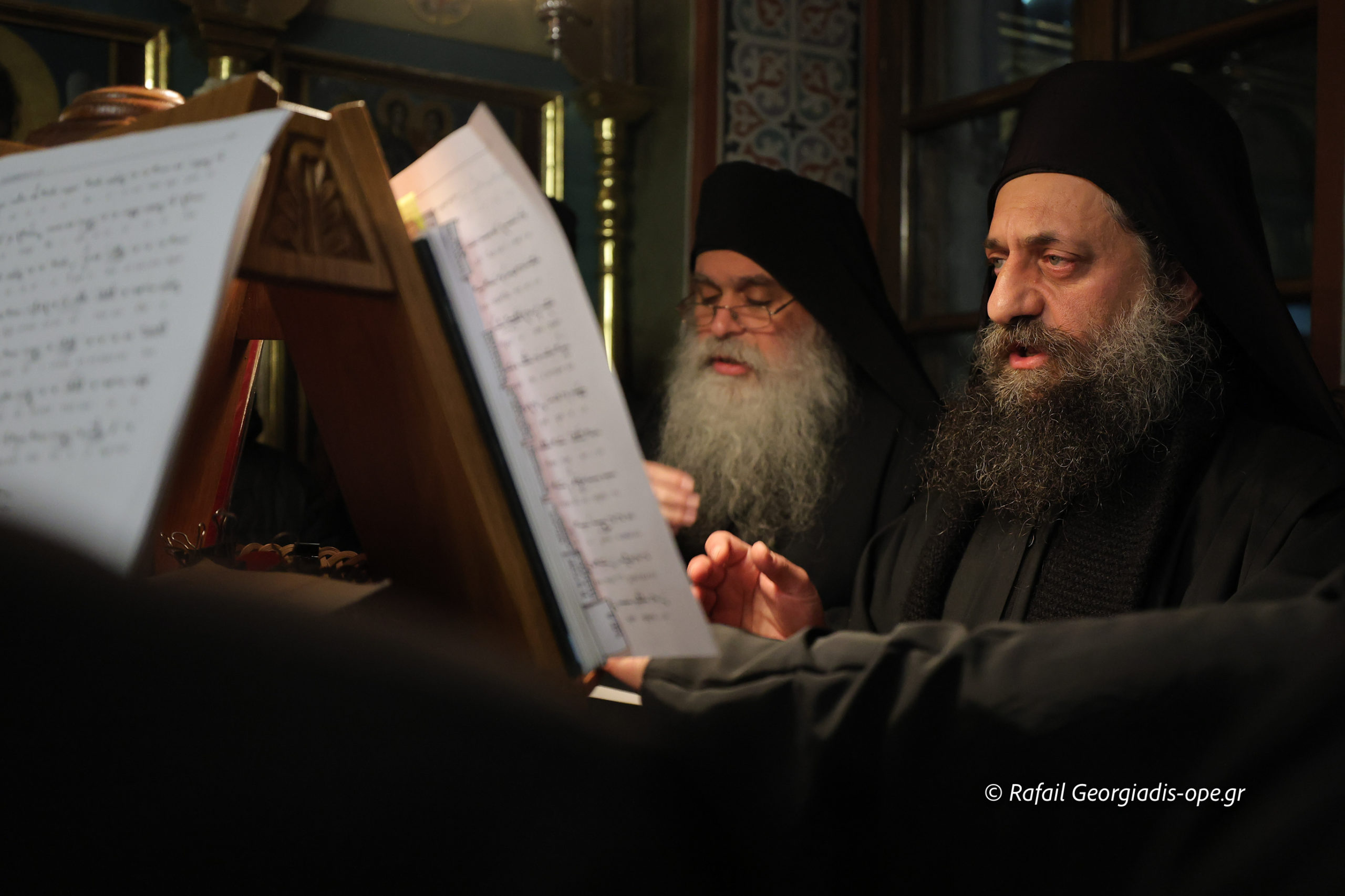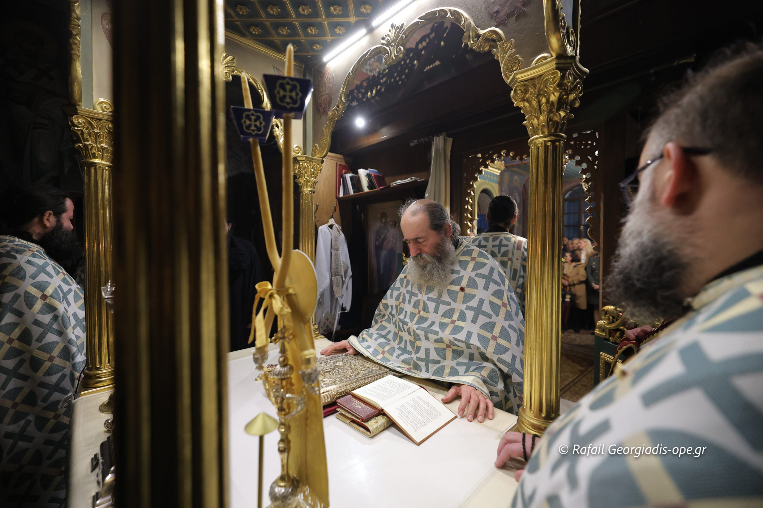 Της Ακολουθίας του Πανηγυρικού Εσπερινού χοροστάτησε ο Θεοφιλέστατος Επίσκοπος Πολυστύλου κ. Σωφρόνιος, πλαισιωμένος από τον Ηγούμενο της Ιεράς Μεγίστης Μονής Βατοπαιδίου, Γέροντα Εφραίμ, Βατοπαιδινούς πατέρες και ιερείς από διάφορες Μητροπόλεις.