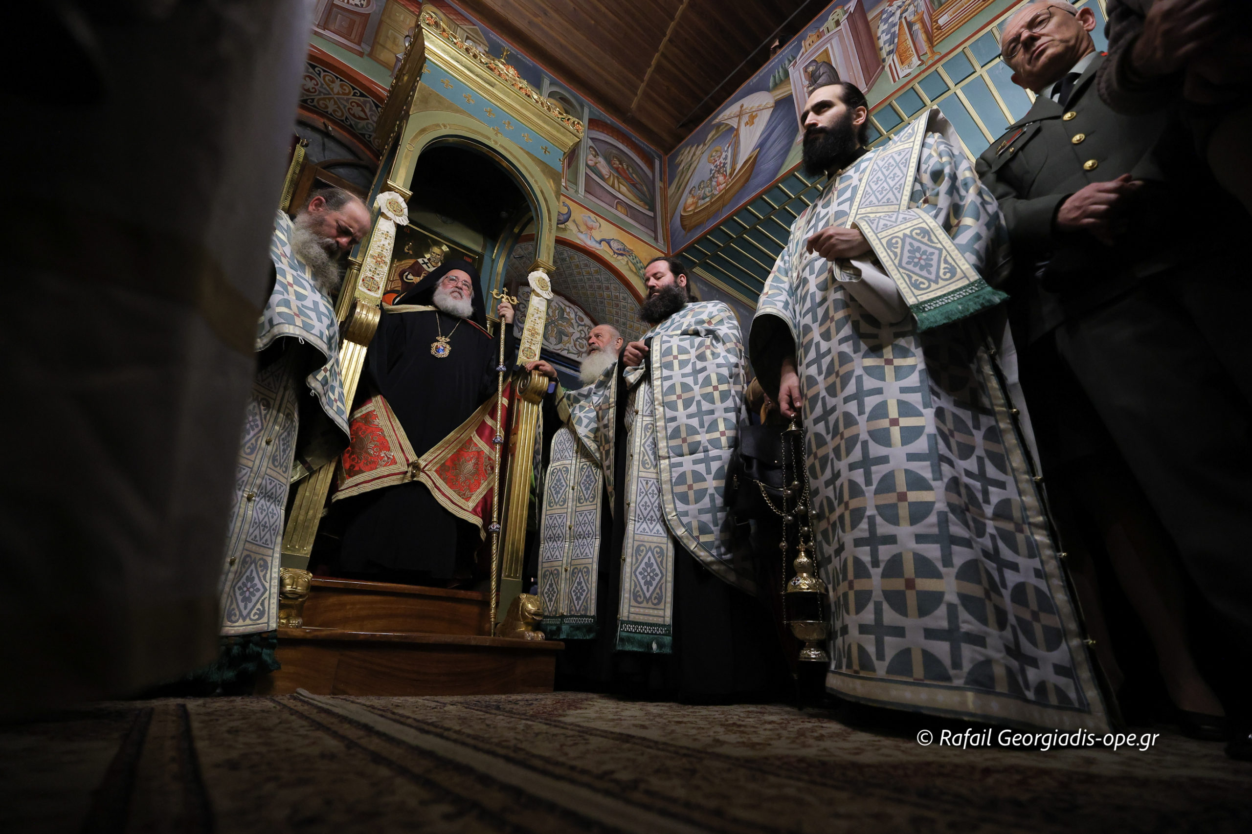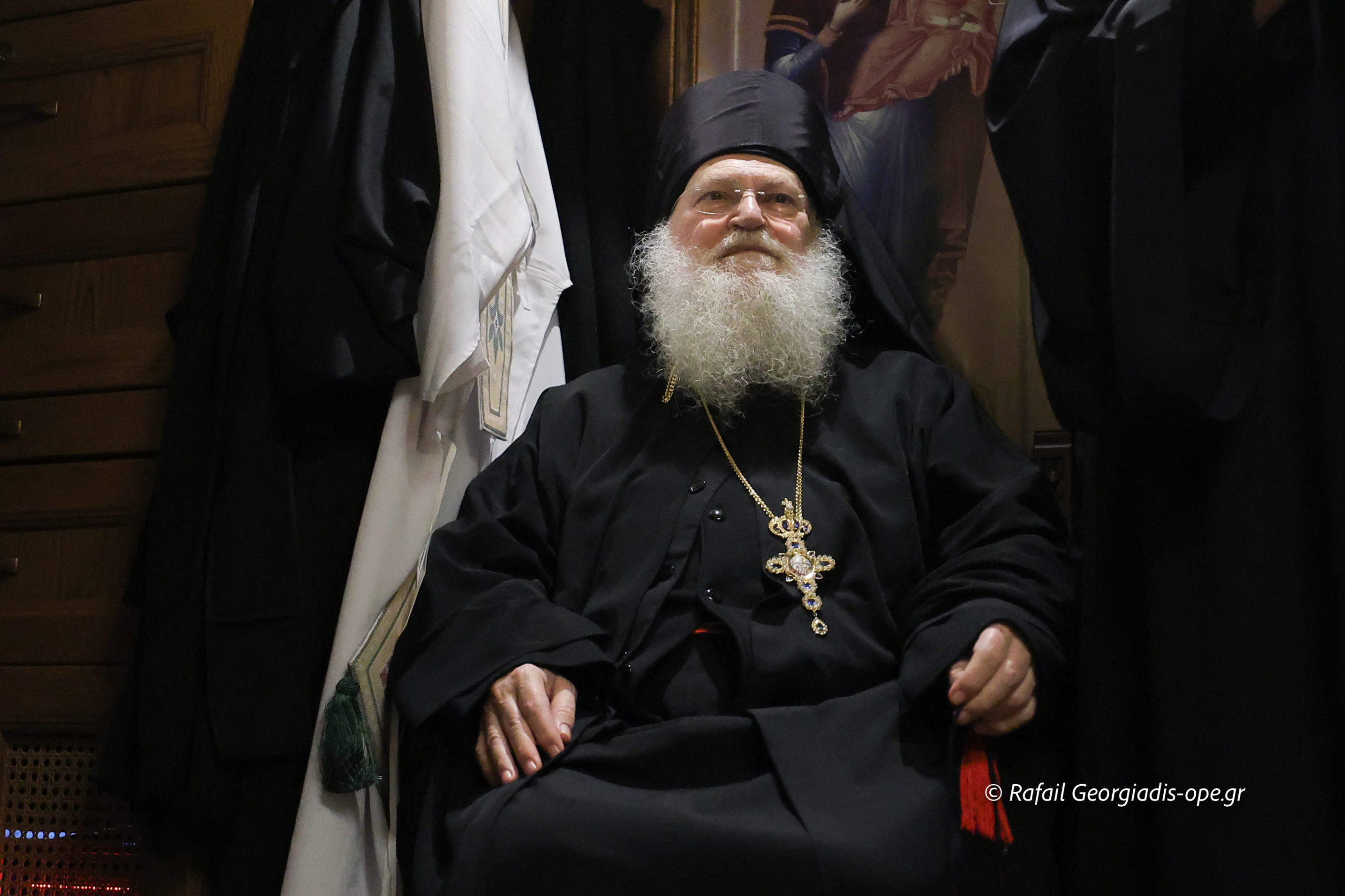 Πριν την απόλυση του Πανηγυρικού Εσπερινού ο Γέροντας Εφραίμ ευχαρίστησε τον Θεοφιλέστατο και ως ανάμνηση της επισκεψεως του, του δώρισε ένα αρχιερατικό εγκόπλιο.