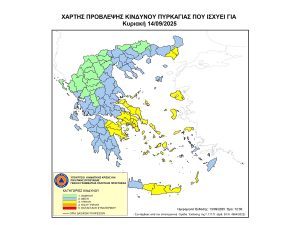 Σύμφωνα με το Χάρτη Πρόβλεψης Κινδύνου Πυρκαγιάς, τον οποίο εκδίδει η Γενική Γραμματεία Πολιτικής Προστασίας του Υπουργείου Κλιματικής Κρίσης & Πολιτικής Προστασίας για την Κυριακή 14 Σεπτεμβρίου 2025 προβλέπεται υψηλός κίνδυνος δασικής πυρκαγιάς (κατηγορία κινδύνου 3) στις ΠΕ Αργολίδας και Κορινθίας.
